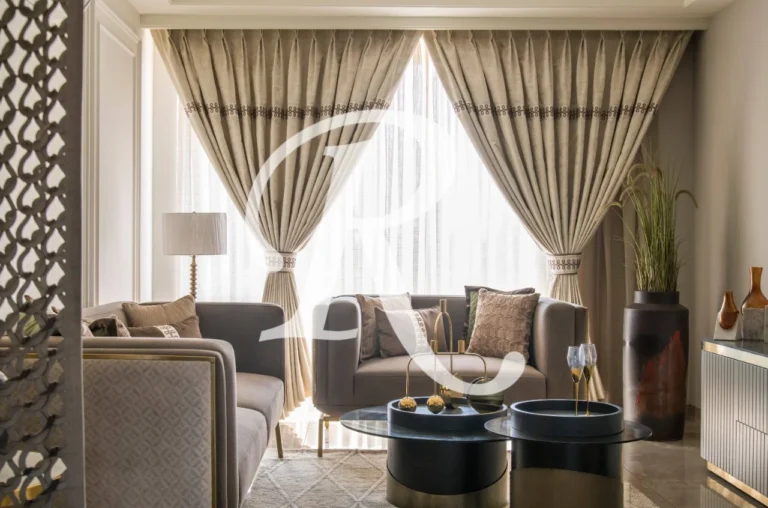 The first and the most formal space of the home , is a composition of modern luxury furniture with distinct shapes and lines, accentuated with minimal window dressing with subtle embroidery details and décor items such as statement cushions, wall art, smart accessories and off course, flowers and foliage to liven up the space.